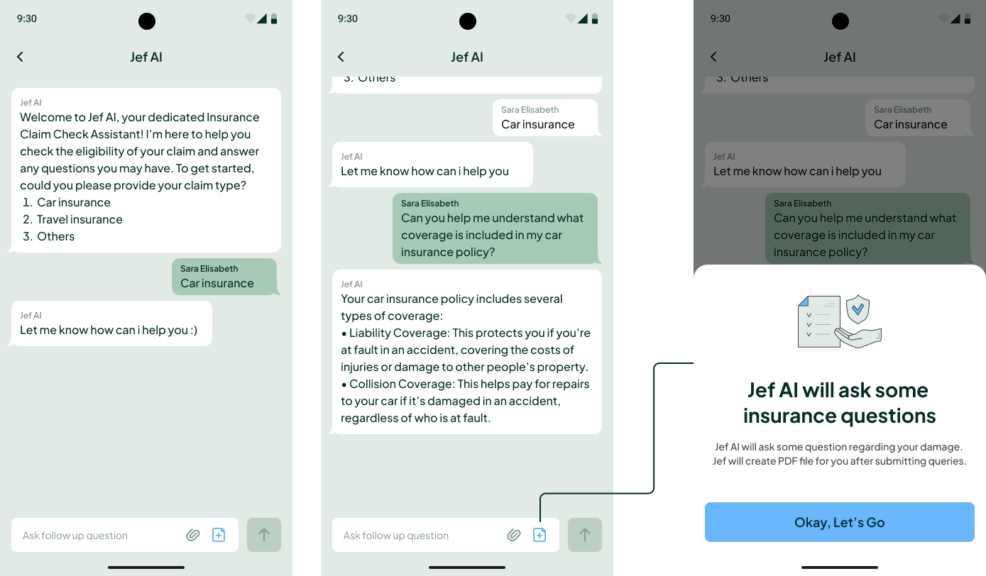 Forget confusing policies and endless forms. Jef AI navigates the insurance landscape for you, guiding you toward a successful claim.